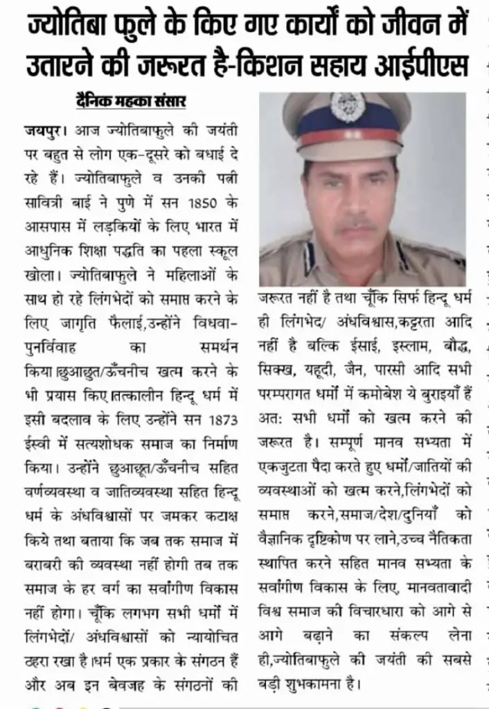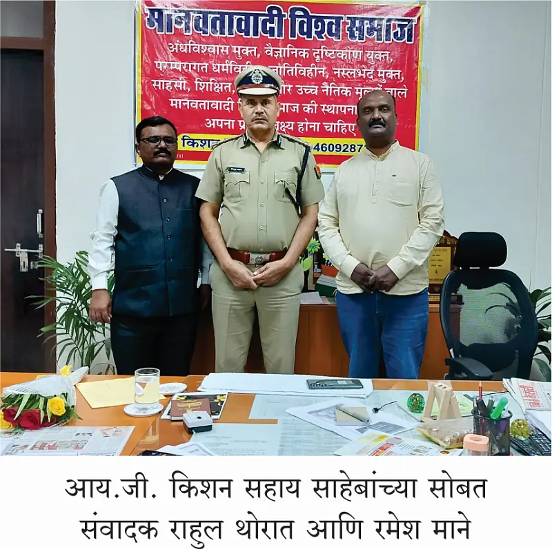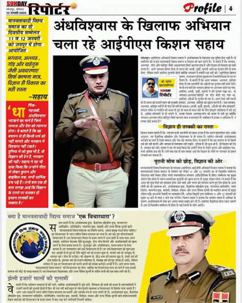 अशा या धाडसी आणि अंधश्रद्धा निर्मूलनाचा विचार पेरणार्या पोलीस अधिकार्याची मुलाखत घेण्यासाठी आम्ही जयपूर पोलीस मुख्यालय गाठले. तेथे किशन सहाय साहेब मानवाधिकार विभागाचे राज्याचे ‘इन्स्पेक्टर जनरल ऑफ पोलीस’ म्हणून काम करतात. त्यांच्या प्रशस्त केबिनमध्ये प्रवेश करताच त्यांनी आमचे हसतमुखाने स्वागत केले.