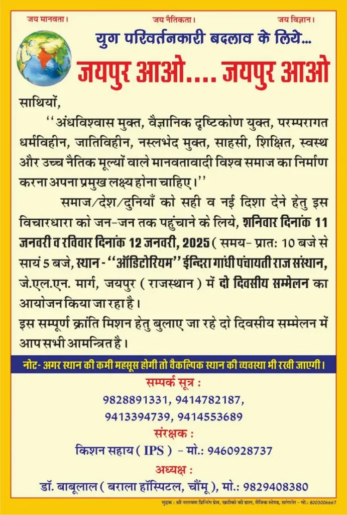 राजस्थानमध्ये अंधश्रद्धा निर्मूलनाचा विचार रुजावा यासाठी मानवतावादी विश्व समाजाचं संमेलन जयपूरमध्ये २०२३ आणि २०२५ मध्ये आम्ही दोन वेळा घेतलं. त्याला हजारो लोक आले होते.