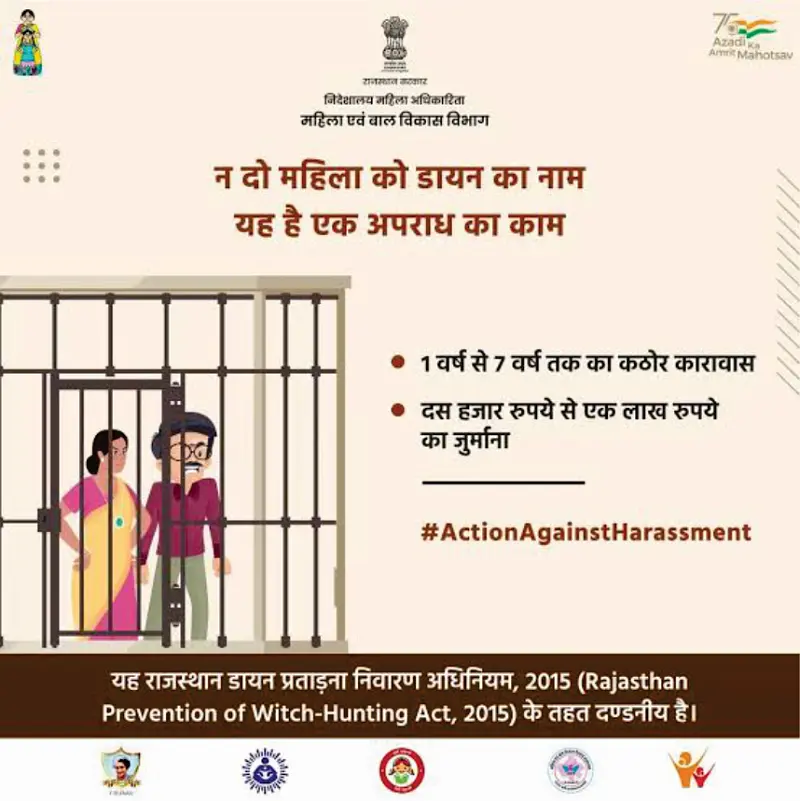 राष्ट्रीय गुन्हे रेकॉर्ड ब्युरोच्या (NCRB) आकडेवारीनुसार, राजस्थानमध्ये २०१६ ते २०२२ या कालावधीत चेटकीण असल्याचा आरोप ठेवून सात महिलांचा खून झाल्याची नोंद आहे.